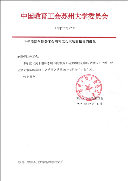 关于耽美小说 分工会增补工会主席的报告的批复 苏大能源委〔2025〕1号