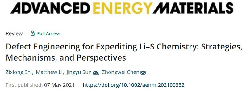 锂硫电池由于诸多优点已经获得了科研工作者的广泛关注,目前限制其大规模应用的瓶颈主要在于多硫化物的穿梭效应和氧化还原动力学缓慢等。近年来缺陷工程作为一种有效的策略已经被广泛应用于锂硫电池的媒介设计,以实现锂硫电池硫反应动力学过程的显著提升。基于此,耽美小说 的孙靖宇教授课题组联合加拿大滑铁卢大学的陈忠伟院士课题组在Advanced Energy Materials上发表题为“Defect Engineering for Expediting Li–S Chemistry: Strategies, Mechanisms, and Perspectives”的综述论文。耽美小说 2019级硕士研究生史子雄为第一作者;孙靖宇教授和陈忠伟院士为共同通讯作者。