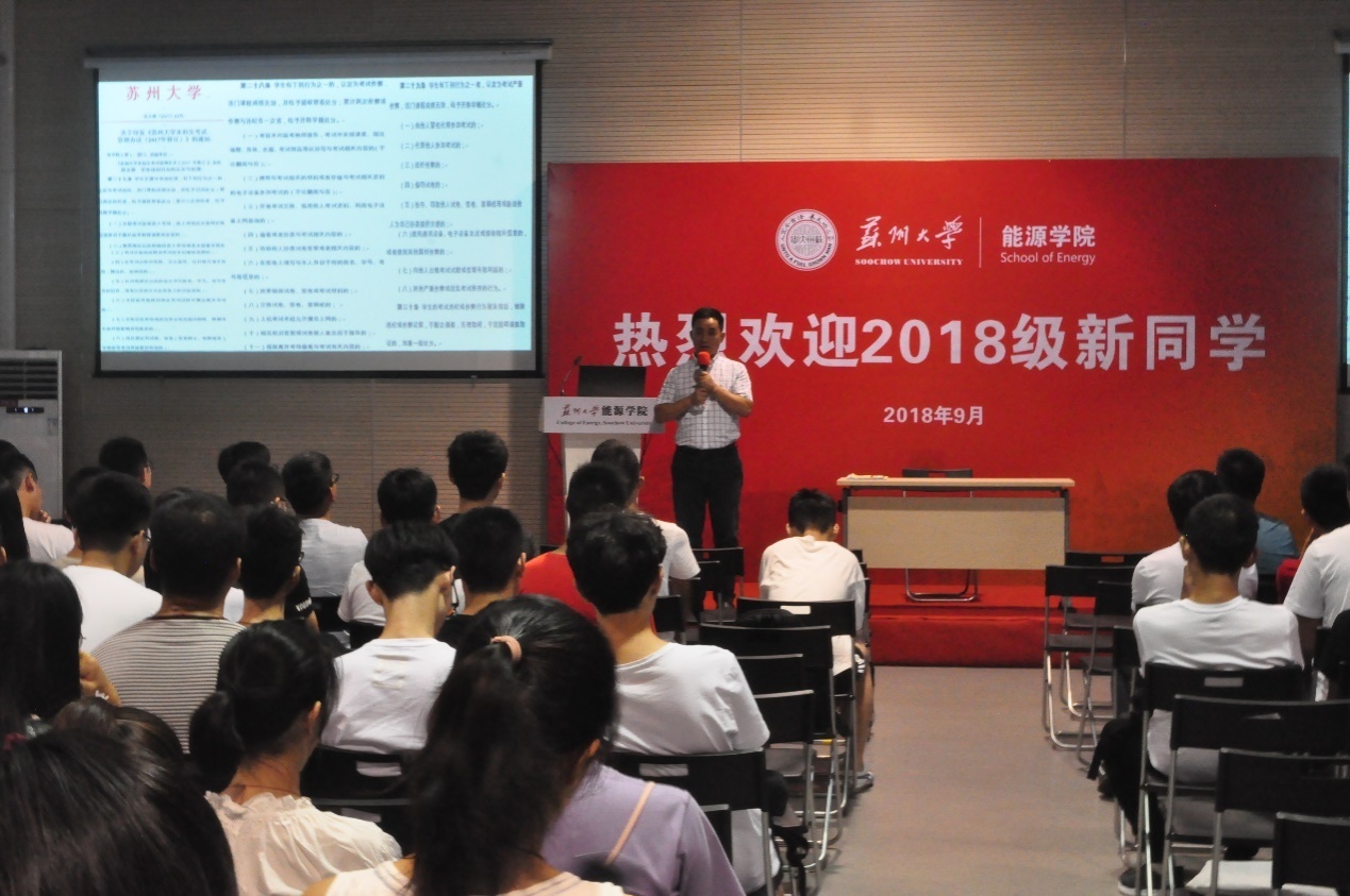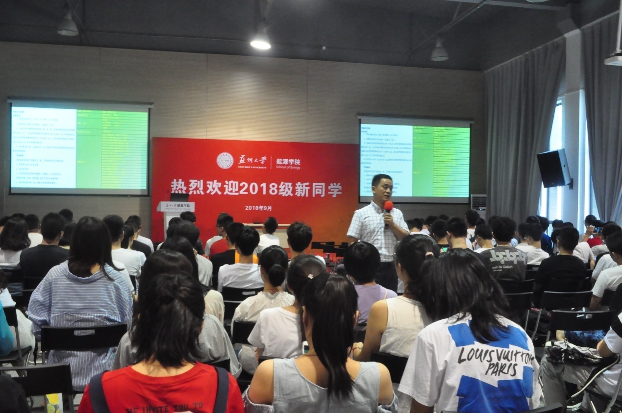 张老师分别从六个方面向新生介绍新生入学须知事项,他首先介绍了苏州繁荣发达与耽美小说 的迅猛发展,强调选择苏州、选择苏大、选择能源的正确性。接着主要对能源的三大专业进行解读,帮助新生树立对本专业的信心,尽快走出开学前期的迷茫期,迅速投入到大学课程的学习当中。