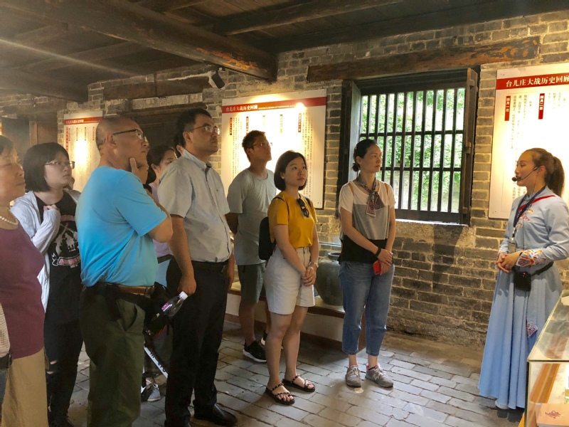 8月14日上午,专题学习小组来到台儿庄大战纪念馆。在讲解员的带领下,党员同志们观看了一张张反映当年战斗场景的图片、一件件战士们使用过的武器、生活器具,倾听了一个个英雄的抗日事迹,重温了革命先烈大无畏气概,接受了一次深刻而生动的红色教育。