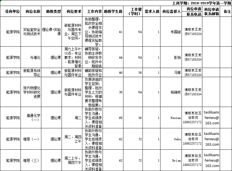 三、聘任流程:应聘博士生对照网上发布的助教岗位信息表在经导师同意后,提交《耽美小说 博士生助教岗位申请与聘用表》(附件3)到设岗单位,各位同学必须在10月29日(周一)前联系下面表格中的岗位联系电话和联系老师进行聘任考核并完成岗位聘任,逾期不予聘任。