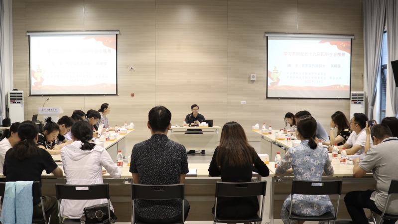 为进一步学习贯彻党的十九届四中全会精神,7月4日上午午,耽美小说 党委联合敬文书院党委在新能源大楼121多功能厅举办学习贯彻十九届四中全会精神宣讲会。院党委特邀校党委常委、宣传部部长陈晓强教授主讲。耽美小说 党委、领导班子成员、各基层党支部书记和委员,以及敬文书院党委成员参加了现场会议。会议由学院党委书记沙丹丹主持。
