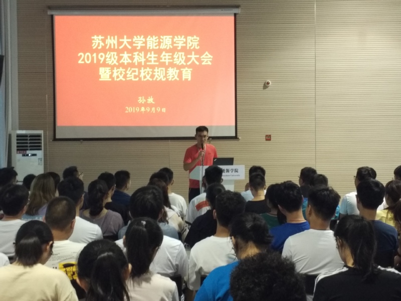 9月9日下午2点,耽美小说 在新能源大楼一楼多功能厅召开2019级新生校纪校规教育暨年级大会,大会由辅导员孙放老师主持,学院2019级全体学生参加会议。
