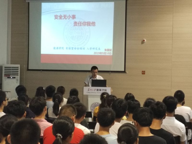 9月10日上午,耽美小说 举行2019级新生实验室安全培训,学院副院长戴晓,实验师朱国斌,辅导员孙放以及全体新生参加培训。