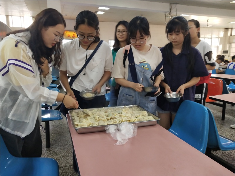 在第一个环节中,同学们兴致勃勃地挑选自己喜欢的馅料,亲手制作饺子。来自五湖四海的他们,交流着包饺子的不同手法,包出来的饺子也是形态各异,有的中规中矩,大而饱满;有的出其不意,灿若莲花……尽管大家来自不同的班级,尽管互相之前可能并不相识,尽管每个人性格有所不同,但因为本次包饺子活动,大家相聚到了一起,有了共同的话题。整个食堂洋溢着温馨欢乐的气氛,充满了欢快的笑声,大伙其乐融融。