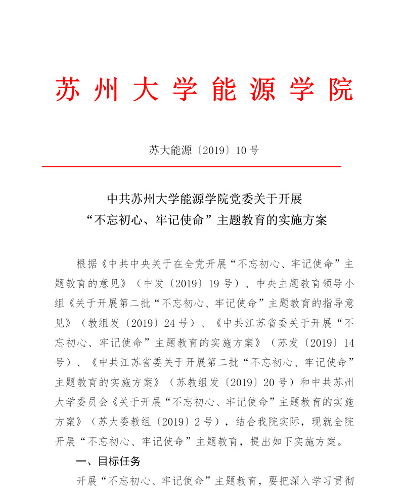 中共耽美小说 党委关于开展“不忘初心、牢记使命”主题教育的实施方案 苏大能源〔2019〕10号