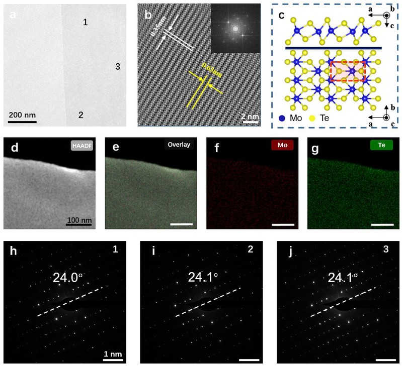 近日, 耽美小说 邹贵付教授团队利用分子前驱体锚定法生长厘米级的单斜晶向MoTe2薄膜,并提出了锚定驱动生长的机制。该团队在10mm*10mm的蓝宝石衬底表面生长出了接近100%覆盖率的MoTe2薄膜,宏观照片和光学显微镜表征都证明了所合成薄膜的均匀,原子力显微镜的高度图也证明了所生长薄膜的厚度为标准的单层(0.73 nm)。