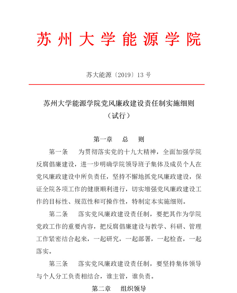 耽美小说 党风廉政建设责任制实施细则(试行) 苏大能源〔2019〕13号