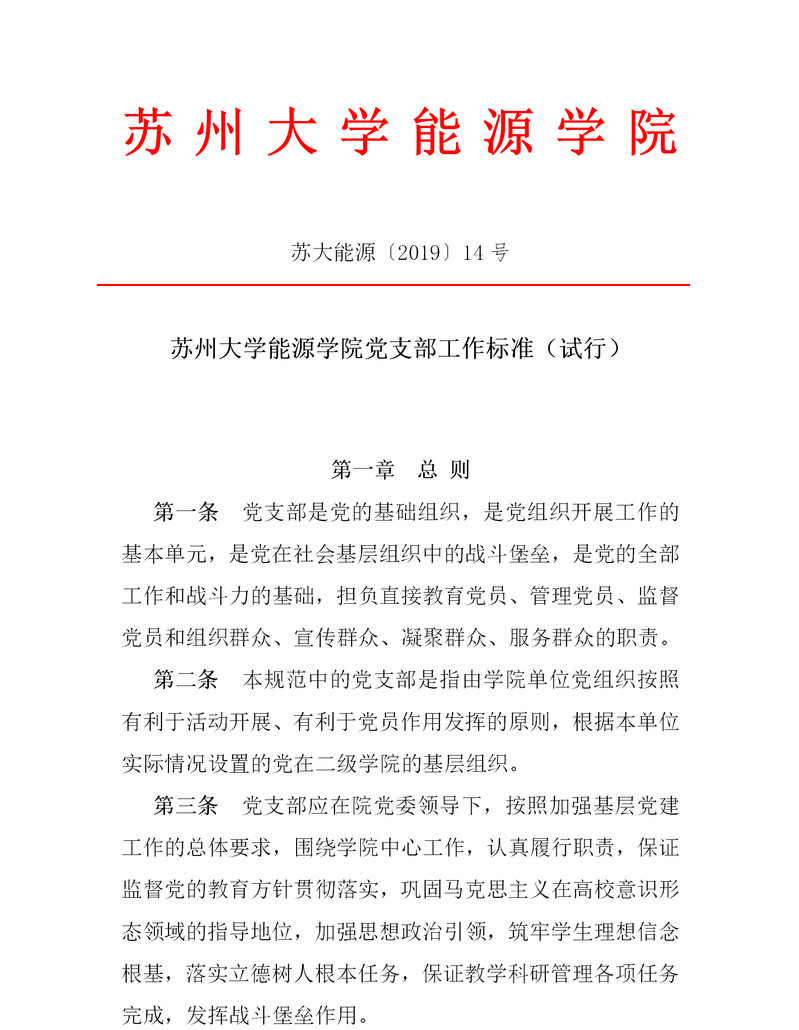 耽美小说 党支部工作标准(试行) 苏大能源〔2019〕14号