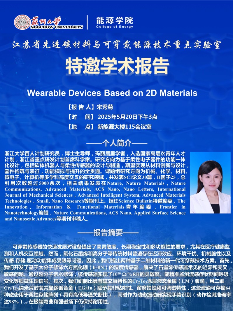 江苏省先进碳材料与可穿戴能源技术重点实验室特邀学术报告
