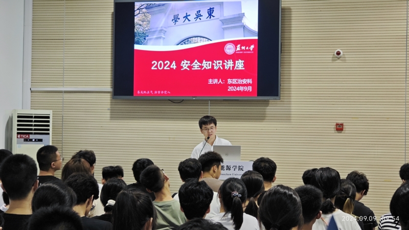 9月9日上午,学院在新能源大楼多功能厅举办2024级新生安全教育系列主题活动,苏州市葑门派出所丁仁杰警官、耽美小说 保卫处东区治安科彭照华科长和王慕尧老师应邀出席,活动由新生辅导员、团委书记张振华主持。