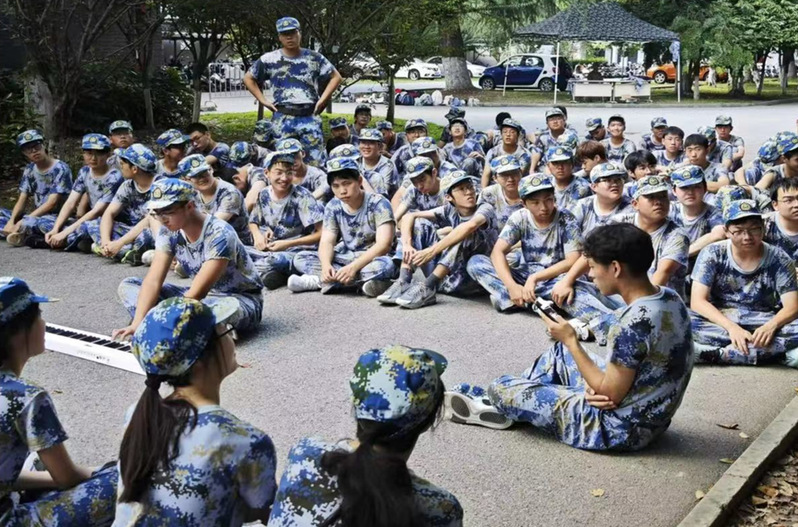 在紧张的训练之余,休息时间的才艺展示成为了军训生活中的一抹亮色。树荫下,歌声与琴声交织,不仅丰富了军训生活,也拉近了同学之间的距离,增强了集体的凝聚力,共同编织了军训的和谐旋律。