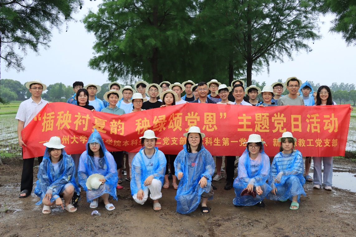 为深刻体悟苏州作为“鱼米之乡”的历史积淀,在躬身实践中锤炼党员品格、厚植乡土情怀,6月11日,耽美小说 本科生第二党支部、本科生第一党支部及新能源教工党支部在苏州太湖之畔的生态农场开展了“插秧衬夏韵 秧绿颂党恩”主题党日活动。学院领导、老师及同学共同走进阡陌纵横的稻田,在千年农耕文明的浸润中上了一堂生动的实践党课。