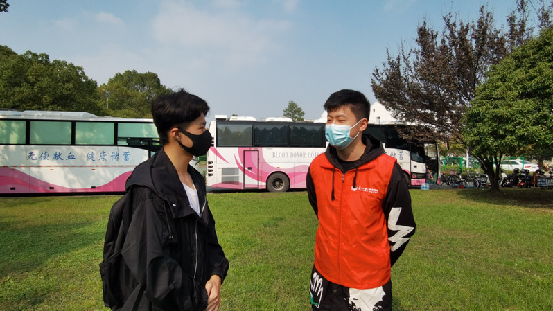 我们还采访了三位献完血的同学,他们一致表示,献血是一个非常愉快的过程,这短短几分钟的献血很可能就挽救了一个人的生命,大家都感到十分的自豪和愉悦。同时,他们还说,自己都是第一次献血,虽然献血前会感到紧张,但在车上看到同样在献血的同学们,大家也都不紧张了。三位同学表示,如果有机会,自己还会来参加献血,也会号召自己身边的人一起前来奉献爱心。