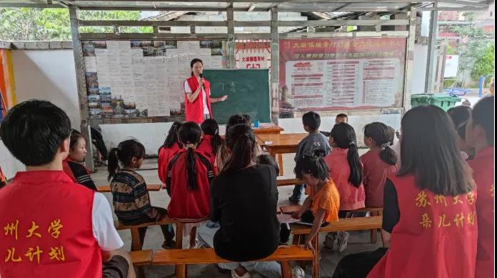 志愿者们还组织小朋友开展趣味运动,团队成员准备了充足的体育器材,如篮球、足球、排球、羽毛球等,在教会孩子们后全部予以赠送。临别前,志愿者还给小朋友分发了苏大爱心扇和苏大明信片,写上苏大人的祝福心语。