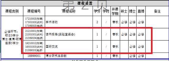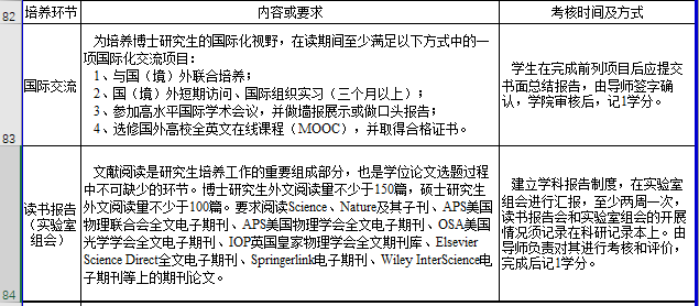 一、在2022级的培养方案中,有“读书报告”、“国际交流”等必修环节,对应的培养方案学分和考核方式如下: