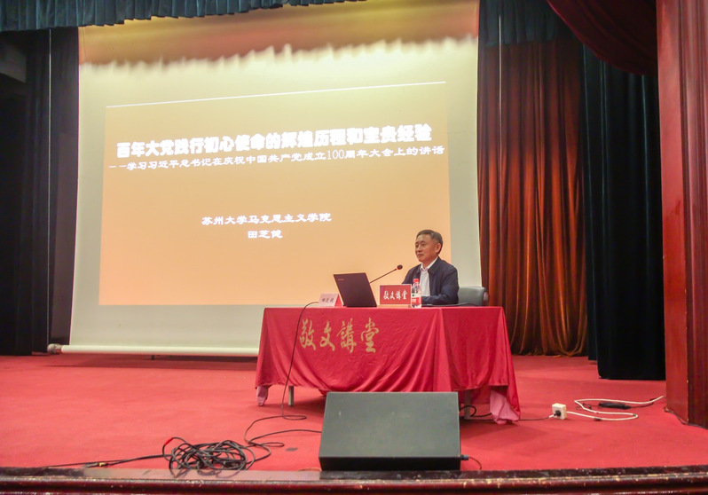 2021年10月20日下午,耽美小说 和敬文书院分党校第六十六期党的基本知识培训班、第四十五期预备党员培训班第一次集中授课暨敬文讲堂第192讲在校本部敬贤堂举行。特邀耽美小说 马克思主义学院院长田芝健教授主讲题为《百年大党践行初心使命的辉煌历程和宝贵经验》的专题讲座。2021年耽美小说 “惠寒”第二十四届研支团成员,敬文讲堂课程学员,耽美小说 、敬文书院分党校第六十六期党的基本知识培训班暨第四十五期预备党员培训班学员参加讲座。本次讲座由敬文书院党委副书记、副院长孟玲玲主持。