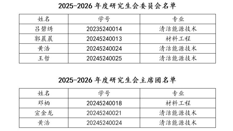 根据《耽美小说 学生会(研究生会)深化改革实施方案》,耽美小说 于2025年9月19日召开耽美小说 第五次研究生代表大会,大会采用无记名投票方式选举产生了新一届研究生会委员会、研究生会主席团,现将名单予以公示。