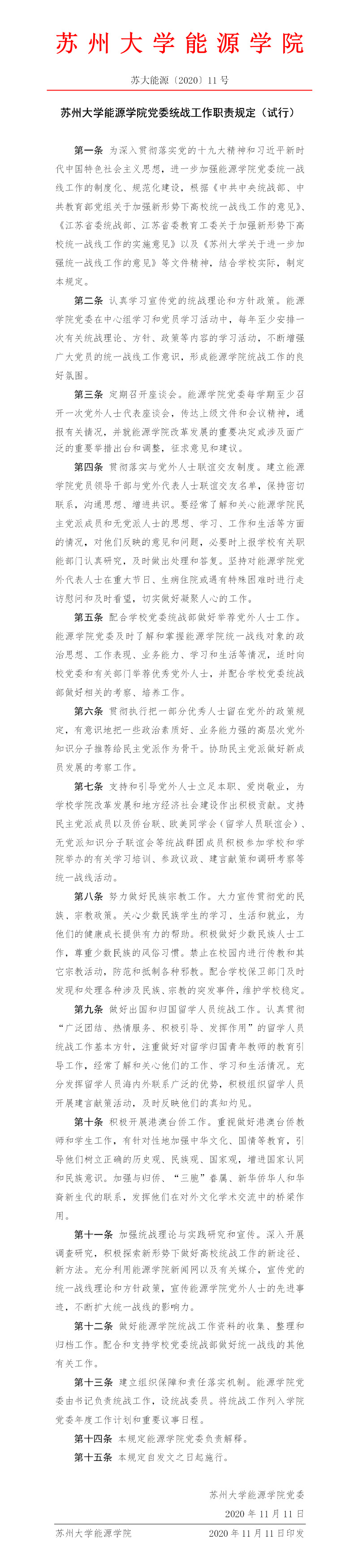 耽美小说 党委统战工作职责规定(试行) 苏大能源〔2020〕11号