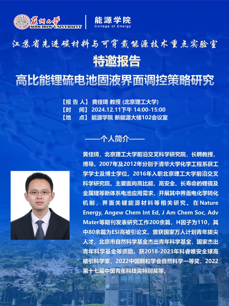 江苏省先进碳材料与可穿戴能源技术重点实验室特邀学术报告