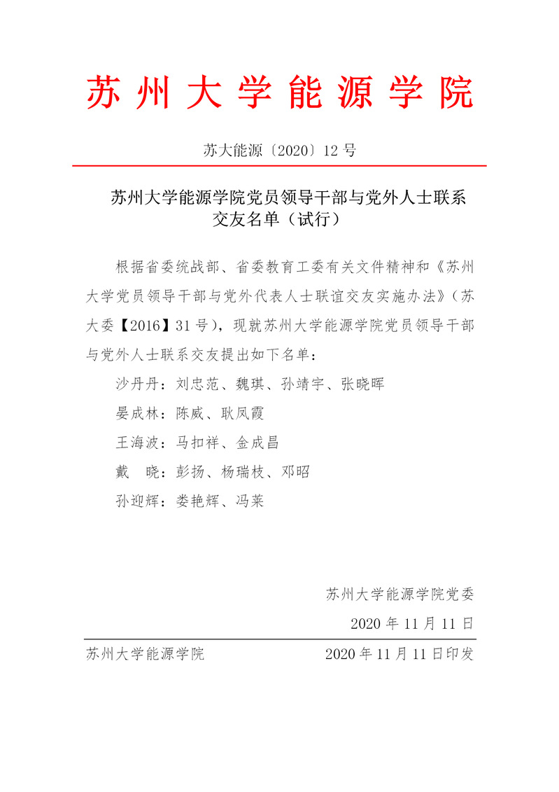 耽美小说 党员领导干部与党外人士联系交友名单(试行) 苏大能源〔2020〕12号