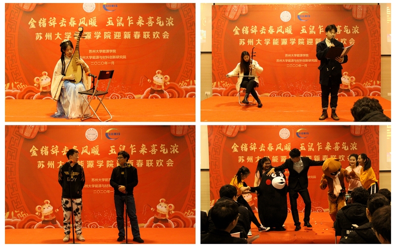 下午6点,耽美小说 2020年度迎新春联欢会在新能源大楼多功能厅成功举办。本次晚会以课题组为单位,演出节目包含相声、歌舞、诗朗诵和乐器表演等多种形式。耽美小说 党委书记沙丹丹老师、副院长彭扬教授、副院长戴晓老师、孙靖宇教授以及全体研究生出席了本次晚会。热情的开场舞拉开了晚会的帷幕,《雏鹰对2020的期待》、《等你下课去蹦迪》、《笑起来真好看》等精彩纷呈的节目轮番将气氛推向高潮。整场晚会流行与古典兼并,温情与火热并举,形式多样,精彩纷呈。晚会特别设置了最佳人气节目奖,最终连雪玉同学的一曲《十面埋伏》拔得头筹。