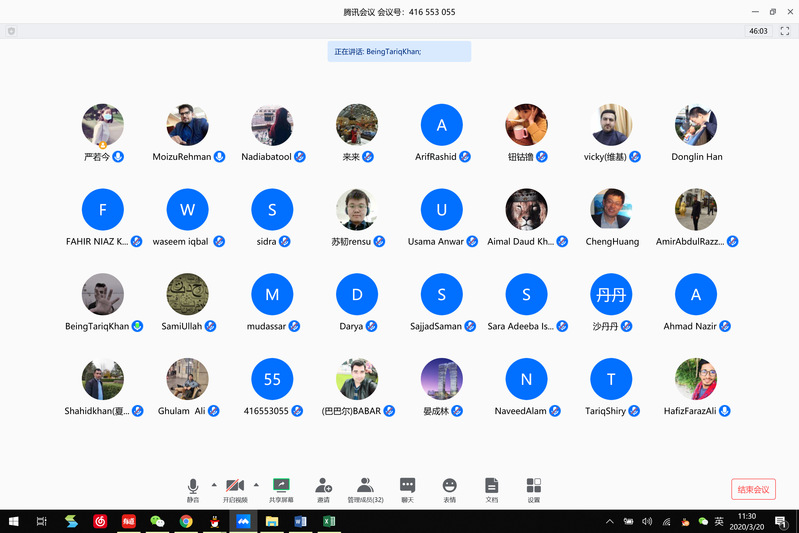 “中国政府做了很好的表率,期待疫情防控取得全面胜利”,“我想感谢学院老师和隔离中心工作人员对我们无微不至的关心和照顾”,“我每天测量体温并做好出入登记,在校园里感觉很安全”。会上,留学生们逐一发言,分享了疫情发生以来国内外疫情防控形势、学习生活和论文写作等方面的所观所感,并就返校时间、返校后疫情防控安排、学期时长调整、奖学金发放、毕业答辩和签证续签等事宜提出了疑问。院领导和老师们认真听取了留学生们的发言,强调保障留学生健康安全是最大前提,学院将严格执行疫情防控相关规定,对在校留学生继续实行封闭管理,境外留学生未经申请不得返回中国。学院还将根据留学生们反映的困难和疑惑,强化人文关怀,多方设法调整教学和管理服务工作,妥善解决合理诉求。