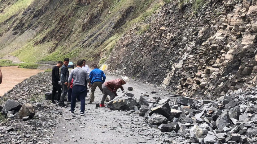 图为当地志愿者走访道路受阻