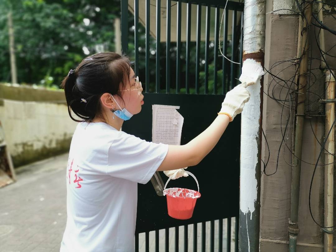 只见小广告清理组人手一桶涂料、一把刷子,一只手套。在这“三件套”的装备下,志愿者们两人一组,和青少年一起逐幢从一楼到五楼,逐层清理,纸制的小广告用铁铲刮除、印刷的小广告则用涂料遮挡,一个个楼道,不停地跑上跑下,每个人满头满脸都是汗,衣服很快就被汗水全浸透了。