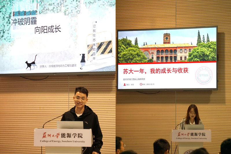 接下来的自由交流环节,新生们有的提出了自己在生活和学习上的疑问,有的分享了自己选择苏大的理由和故事。大家在轻松愉快的交流氛围中加强了联系,也提升了对苏大的归属感和认同感。