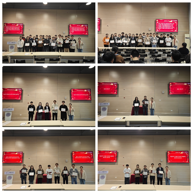 在庄重而热烈的氛围中,大会依次揭晓十大奖项。严若今老师为获奖学生颁奖并合影。同学们身着正装,精神抖擞地依次上台接受荣誉,台下掌声不断,既是对获奖者的祝贺,也是对拼搏与奉献精神的集体致敬。