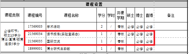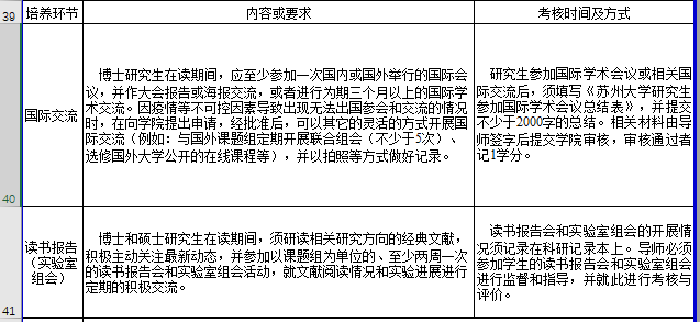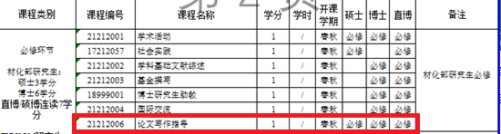 一、在2021级的培养方案中,有“读书报告”、“国际交流”、“论文写作指导”等必修环节,对应的培养方案学分和考核方式如下: