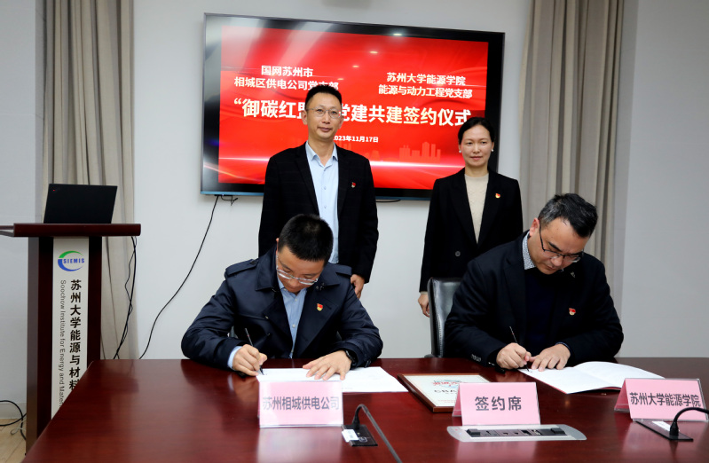 为进一步加强新形势下基层党组织建设,强化党组织之间交流合作,实现“党建强、发展强”的目标,构建“资源共享、优势互补、互相促进、共同提高”的党建工作新格局,11月17日下午,耽美小说 与国网苏州市相城区供电公司在新能源大楼102会议室举行“御碳红盟”党建共建签约仪式暨党建工作交流活动。国网苏州市相城区供电公司党委书记钱科军、总经理张建梁,耽美小说 党委书记沙丹丹、能源与动力工程党支部书记吴玺等出席了本次会议。