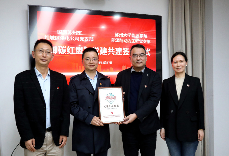 接下来,沙书记对党建共建工作如何实现党组织工作互动和资源共享,优势互补,提升党建水平作出了指导,期待双方共同推进产业行业绿色转型,积极践行“双碳”目标的红色能量,同时期望双方党建结对共建能结出更为丰硕的成果;钱书记针对党员干部如何更好发挥“先锋引领”作用提出四点想法:一是胸怀大局“有担当”,在应对CBAM碳关税政策中做好排头兵;二是精益钻研“能攻坚”,唯有攻坚克难时,方显党员先进本色;三是统筹协调“会推动”,同步大学科研机构等合力筑起解决难题的红色堡垒;四是咬定目标“肯吃苦”,彰显咬定目标不放松的工作干劲,确保重点服务任务如期完成。