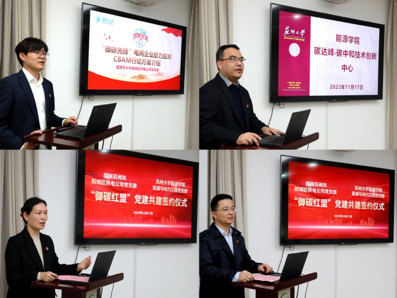 会议伊始,耽美小说 与国网苏州市相城区供电公司互相介绍了参加本次活动的各位领导及老师。紧接着,国网苏州市相城区供电公司的顾禛奕同志介绍了“御碳先锋”电网企业应对CBAM(欧洲碳边境调节机制)的行动方案,阐述了国网苏州市相城区供电公司党支部如何运用“御碳优能”进一步扩展公司的能效服务、如何为越来越严峻的国外碳关税政策做好准备;耽美小说 能源与动力工程专业系主任吴玺介绍了耽美小说 目前所有的师资力量、科研方向以及“碳达峰·碳中和技术创新中心”为应对接下来CBAM的碳关税政策目前进行的研究和未来的发展规划,同时表达了对两方基层党支部结对共建的未来展望。
