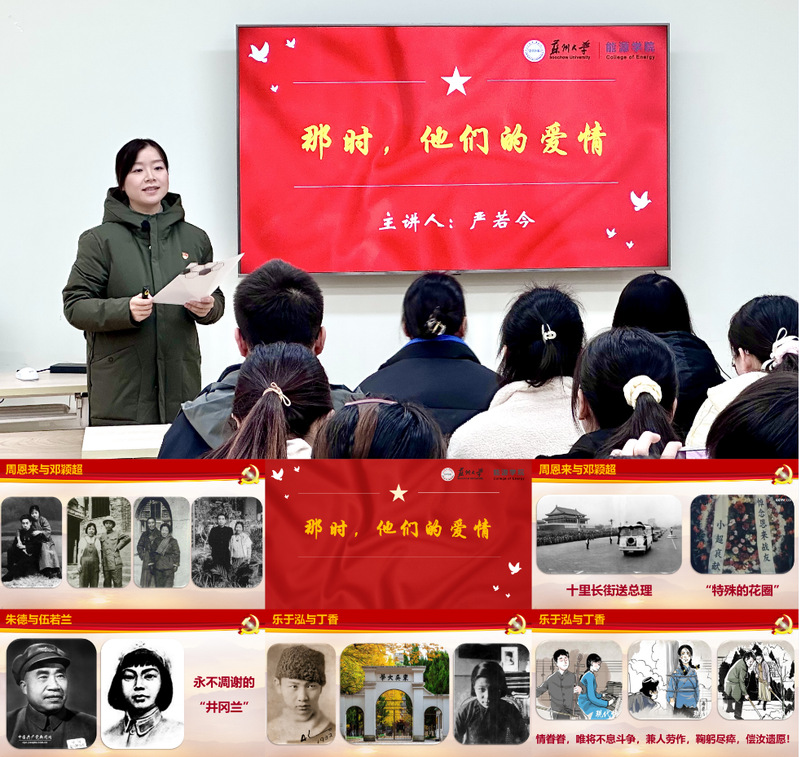 今天的中国共产党已经走过了百年的光辉历程,烽烟乱世,战火纷飞的岁月里,总有一些人、一些事被追寻和铭记,12月19日,研究生第一党支部书记严若今在新能源大楼315会议室给支部党员和积极分子上了一堂生动的党课。严若今以《那时,他们的爱情》为主题,带领同志们重温一代又一代共产党人爱的誓言。