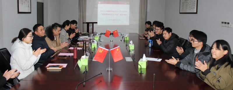 1月8日下午,耽美小说 2018—2019学年研途阳光社会工作奖学金颁奖典礼在新能源大楼102室举行。苏州研途教育副总裁、研途阳光考研校长吴恒华先生,耽美小说 党委书记沙丹丹,团委书记张振华,团委副书记孙放、严若今老师以及全体获奖同学参加了本次颁奖典礼,典礼由孙放老师主持。