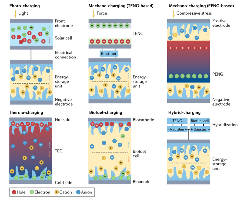 在本文中,作者介绍了以柔性太阳能电池、机械能量收集器、热电、生物燃料电池为代表的能量收集器件和柔性储能器件的复合设备在单个平台上的集成。重点讨论了能量收集器和能量存储单元之间有效能量传输的电源管理策略以及这些自充电电源在柔性电子器件中的应用。最后概述了与提高性能相关的科学挑战,并在材料工程和设备设计中提出解决这些问题的策略。