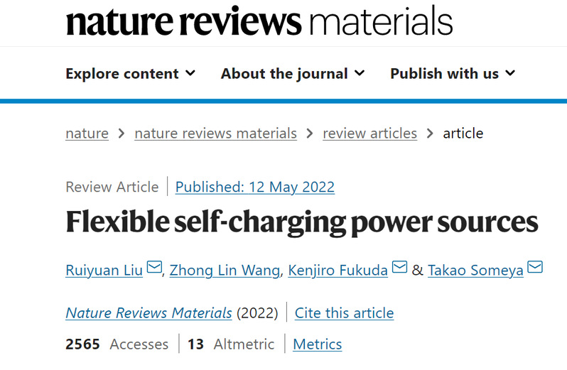 近日,耽美小说 刘瑞远教授、中科院北京纳米能源与系统研究所王中林院士、日本理化学研究所Kenjiro Fukuda、日本理化学研究所和东京大学Takao Someya教授在Nature Reviews Materials上发表题为“Flexible self-charging power sources”的综述论文。刘瑞远教授为论文的第一作者和共同通讯作者,Kenjiro Fukuda和Takao Someya教授为论文的共同通讯作者,论文第一单位为耽美小说 。