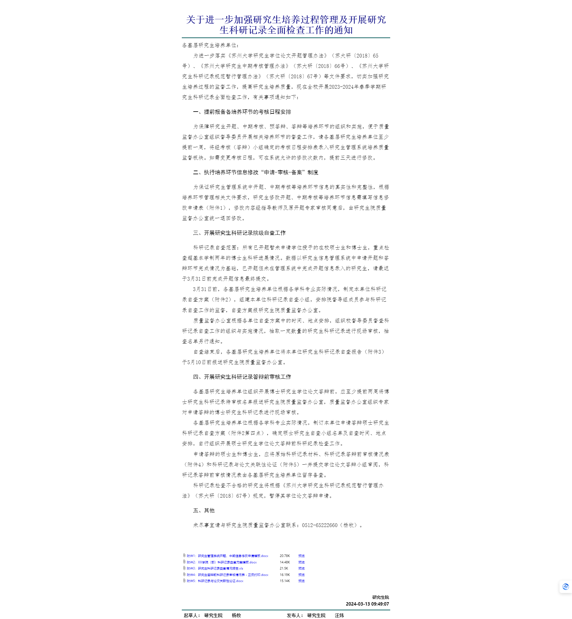 学校在2024年3月13日发布《关于进一步加强研究生培养过程管理及开展研究生科研记录全面检查工作的通知》//file.dmxstop.com/defaultroot/gov/info_view_my.jsp?whir_new_verifyCode=1&editId=36901204,