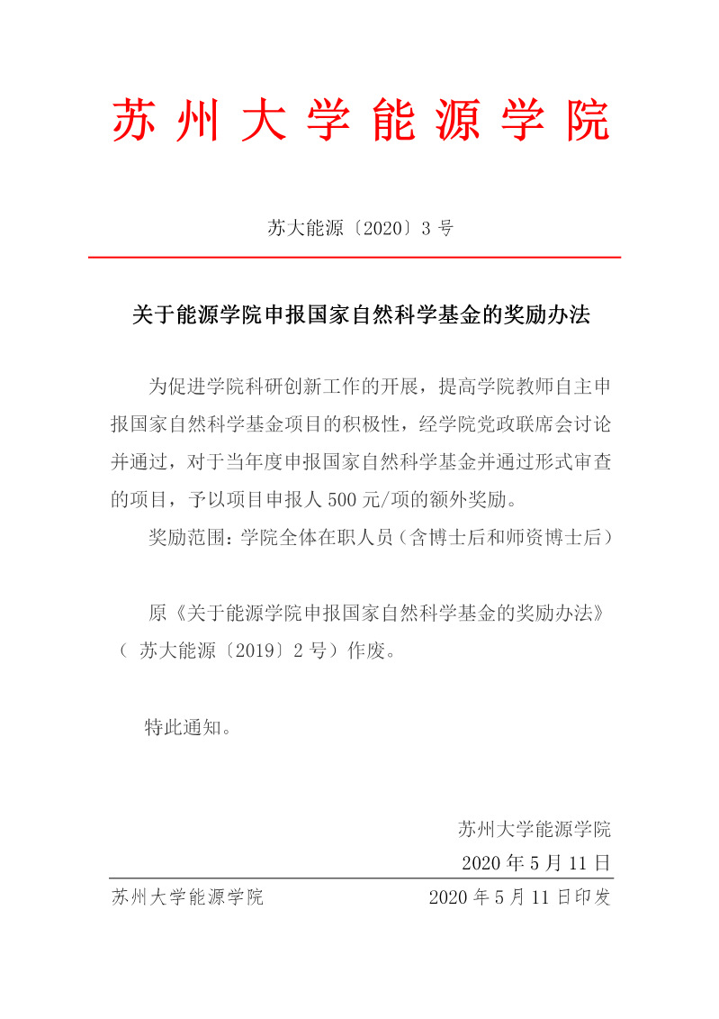 关于耽美小说 申报国家自然科学基金的奖励办法 苏大能源〔2020〕3号