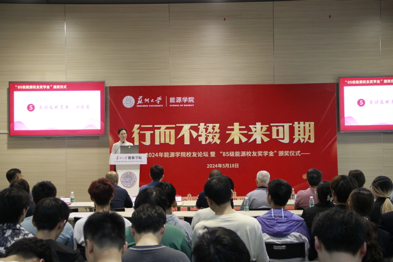 活动伊始,胡碧洋老师介绍了与会嘉宾。随后,戴苏明老师发表致辞并做了“行而不辍 未来可期”的主旨报告。戴老师向设立“85级能源校友奖学金”的全体85级校友表示深切的感激,同时也向15名获奖同学表示衷心的祝贺。戴老师强调,奖学金不仅是一种物质上的奖励,更是一种精神上的鼓励和肯定,希望各位获奖同学能够行而不辍,努力学习,不断进步,争取在各自的领域取得更大的成就,为社会的发展贡献青春力量。