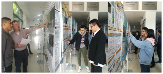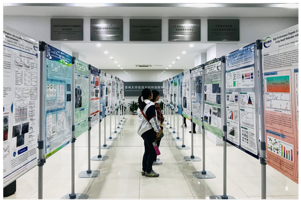 学术海报评审于当天上午在新能源大楼大厅举行,参评同学详细地向评审老师及现场同学们讲解自己的海报。评委老师根据学生讲解、课题研究方法等进行提问,并针对学术海报的版面规范、学术海报所要突出的内容、科研工作的实验方法等方面提出指导性建议。
